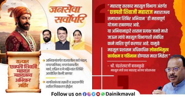 Dainik Maval News : राज्यातील सर्वसामान्य जनता, शेतकरी, महिला आणि विद्यार्थ्यांचे महसूल विभागाशी संबंधित दैनंदिन प्रश्न जलदगतीने सोडविण्यासाठी तसेच महसूल प्रशासन अधिक लोकाभिमुख व गतिमान करण्यासाठी ‘छत्रपती शिवाजी महाराज महाराजस्व समाधान शिबीर अभियान’ राबविण्यात येणार आहे. हे अभियान प्रत्येक महसूल मंडळात व नगर पंचायत/ नगर परिषद स्तरावर अधिक वस्तुनिष्ठ, लक्ष्य केंद्रित व परिणामकारकरित्या राबविण्यात येईल असे सांगून या अभियानाचा पहिला टप्पा मार्च ते मे 2026 या कालावधीत राबविण्यात येणार असल्याची माहिती महसूल मंत्री चंद्रशेखर बावनकुळे यांनी विधिमंडळाच्या दोन्ही सभागृहात निवेदन करताना दिली.