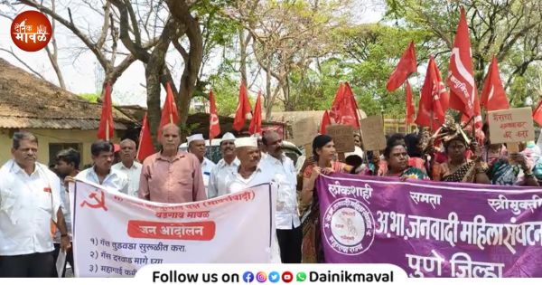 Dainik Maval News : मार्क्सवादी कम्युनिस्ट पक्षाच्या वतीने गुरुवारी (दि. २ एप्रिल) मावळ तहसीलदार कार्यालयासमोर जोरदार निदर्शने करण्यात आली. महिलांनी कार्यालयासमोर चूल पेटवून भाकरी करत प्रतिकात्मक आंदोलन केले.