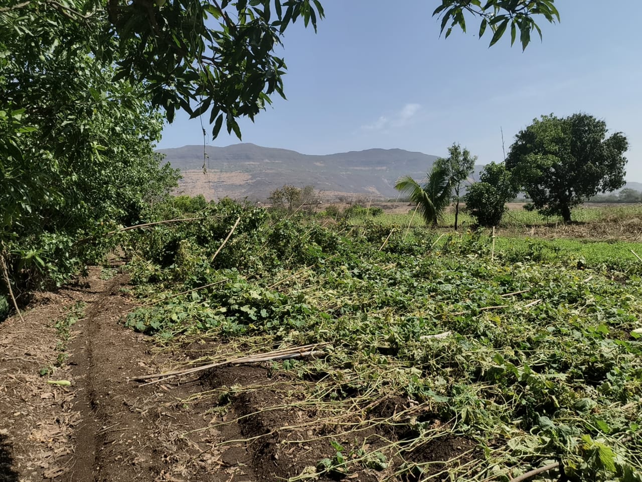 पवन मावळ विभागातील शिवणे भागात वादळी वाऱ्यासह झालेल्या जोरदार अवकाळी पावसामुळे येथील शेतकरी चंद्रकांत गणपत कुंभार यांच्या शेतीचे मोठ्या प्रमाणात नुकसान झाले आहे. त्यांनी शेतात लावलेला फळभाजीपाला, भाजीपाला याचे हातातोंडाशी आलेले पिक या अवकाळी पावसाच्या फेऱ्यात जवळपास उद्धवस्त झाले असून शेतकऱ्याचे मोठ्या प्रमाणात नुकसान झाले आहे. शासनाने या नुकसानीची पाहणी करून शेतकऱ्याला आर्थिक आधार द्यावा, अशी प्रतिक्रिया चंद्रकांत कुंभार यांनी दैनिक मावळ सोबत बोलताना दिली.