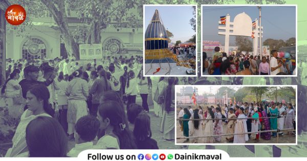 Dainik Maval News : मावळ तालुक्यातील देहूरोड येथील ऐतिहासिक धम्मभूमीचा 71 वा वर्धापनदिन मोठ्या उत्साहात अन् आनंदात विविध धार्मिक, सामाजिक उपक्रम राबवून साजरा करण्यात आला. राज्याच्या कानाकोपऱ्यातून हजारोंच्या संख्येने भीमअनुयायी येथील भगवान गौतम बुद्ध, डॉ. बाबासाहेब आंबेडकर यांच्या अस्थी स्तुपास अभिवादन करण्यासाठी दाखल झाले होते. हजारो भीम अनुयायी ऐतिहासिक धम्मभूमीवर दाखल झाल्याने धम्मभूमीला जनसागराचे स्वरूप प्राप्त झाले होते. पहाटेपासून ते रात्री उशीरापर्यंत रांगेत उभे राहून भीम अनुयायांनी भगवान गौतम बुद्ध आणि डॉ. बाबासाहेब आंबेडकर यांच्या अस्थी स्तुपापुढे नतमस्तक होऊन अभिवादन केले.