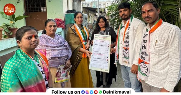 Dainik Maval News : वडगाव नगरपंचायत सार्वत्रिक निवडणूक 2025 मध्ये राष्ट्रवादी काँग्रेस पार्टी पक्षाकडून नगराध्यक्ष पदाच्या उमेदवार असलेल्या अबोली मयूर ढोरे यांनी प्रचारात आघाडी घेतल्याचे चित्र दिसत आहे. तसे पाहता निवडणूक सुरू होण्यापूर्वीच निवडणूक लढविण्याच्या तयारीत असलेल्या अबोली ढोरे यांना जेव्हा प्रत्यक्षात राष्ट्रवादी काँग्रेस पार्टी कडून अधिकृत उमेदवारी मिळाली, त्यानंतर मात्र त्यांनी प्रचाराचा जोर आणखीच वाढवला आहे.